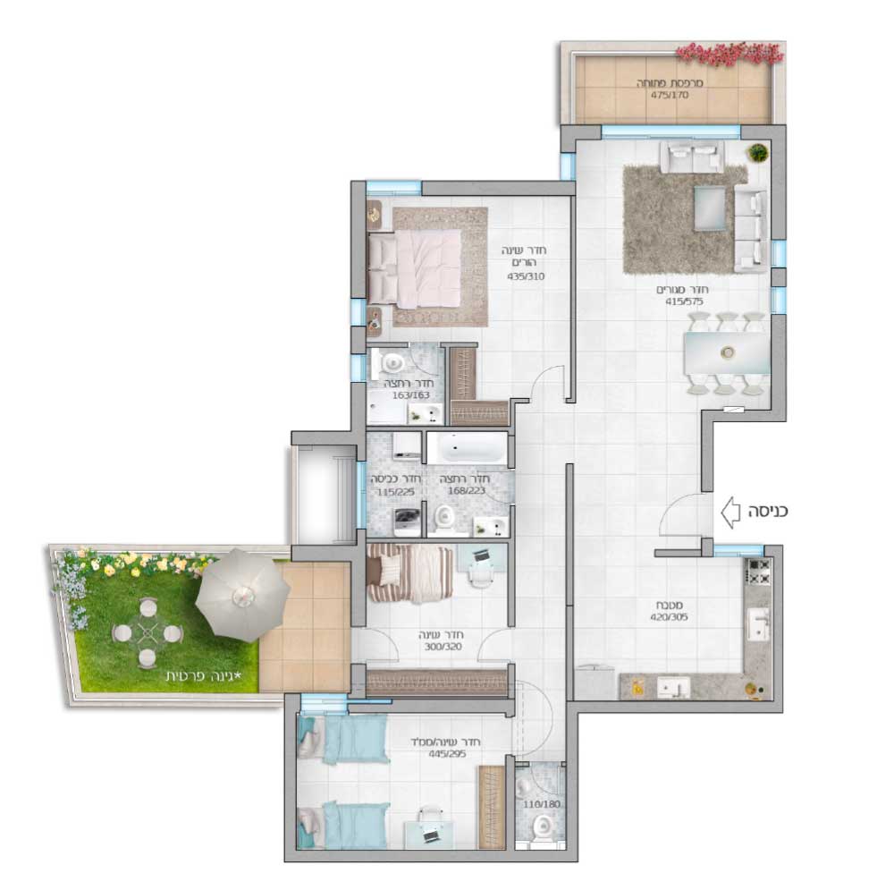 99 מ"ר עם מרפסת שמש סוכה וחניה! אחרונה! 3 חדרים החל מ-