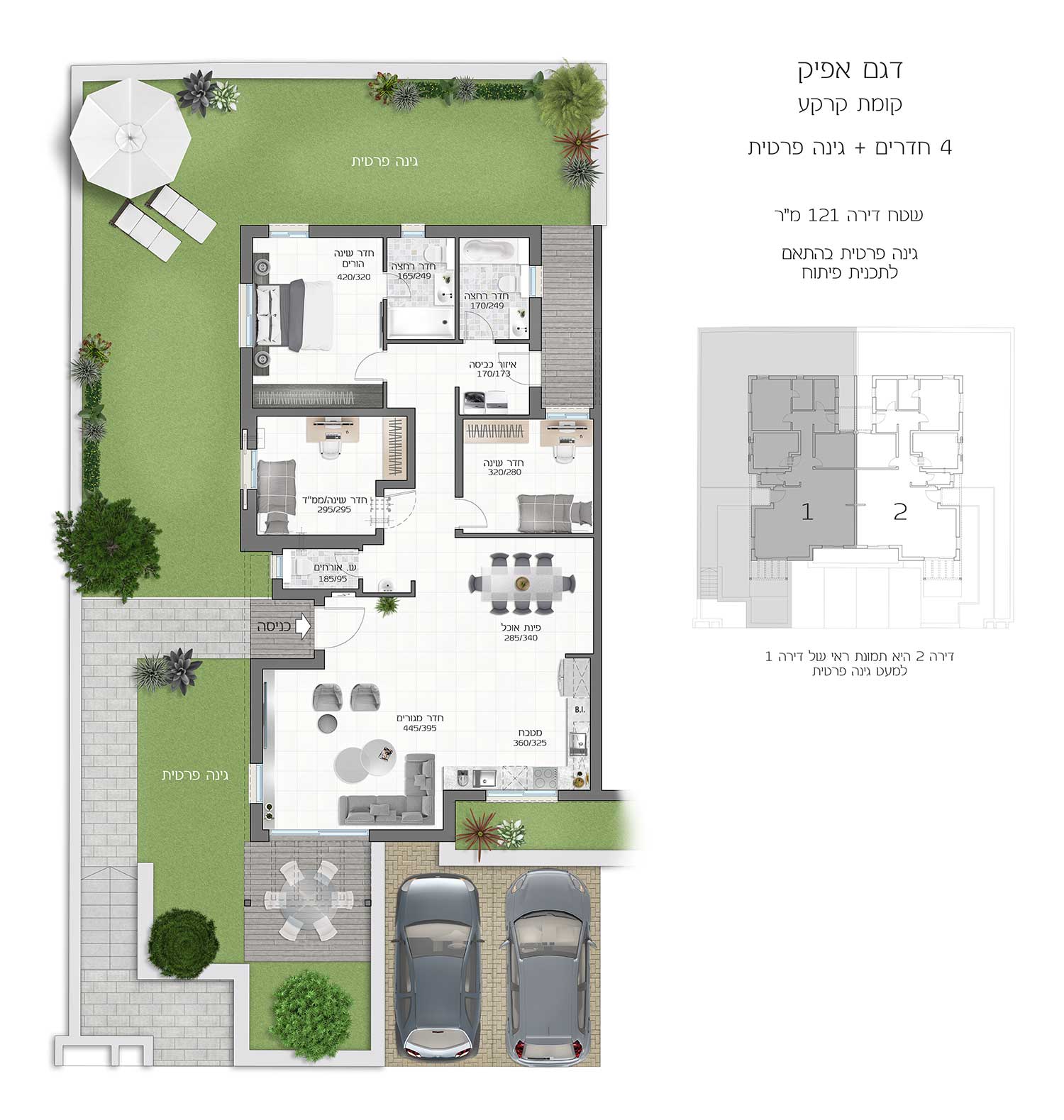 4 חדקוטג' עם גינהקוטג' 4 חדרים